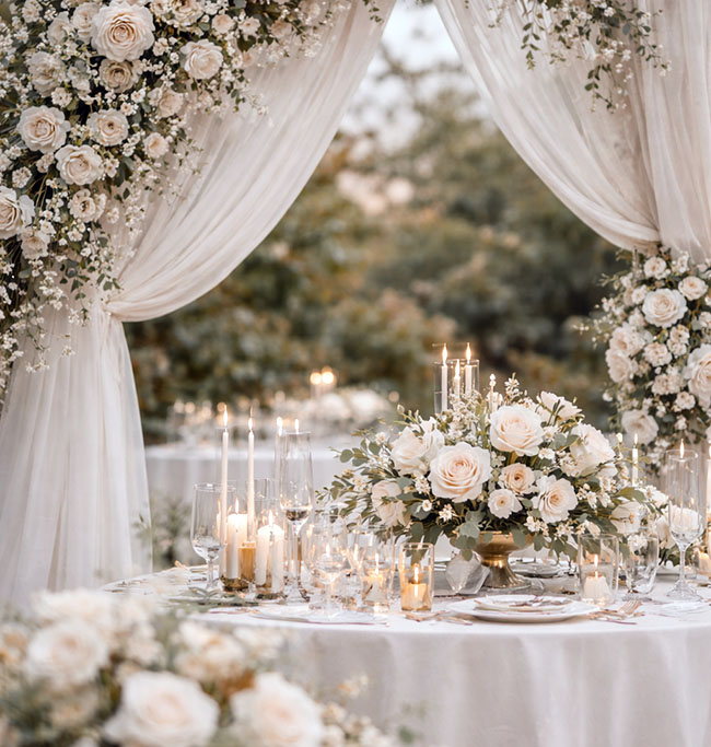 Μαζί θα επιλέξουμε λουλούδια, χρωματικές παλέτες και διακοσμητικές προτάσεις που θα αναδείξουν τον χώρο και θα δημιουργήσουν μια ατμόσφαιρα ρομαντική, κομψή ή σύγχρονη — ακριβώς όπως την έχετε ονειρευτεί.